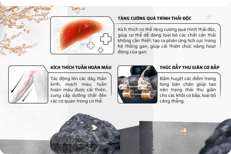 Thiết kế đa năng của bi lăn trên ghế massage FC-366 không chỉ giới hạn ở việc xoa bóp để thư giãn cơ bắp, mà còn có khả năng mô phỏng thao tác bấm huyệt. Điều đặc biệt là bi lăn có khả năng bấm huyệt ở lòng bàn chân, đem lại sự hỗ trợ đáng kể cho việc cải thiện sức khỏe.