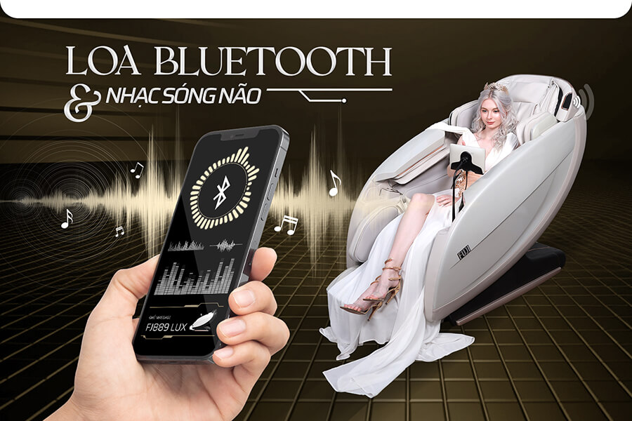 Mỗi bài massage tự động sẽ được trang bị một bài nhạc sóng não riêng phục vụ cho người dùng. Ngoài ra, nếu bạn muốn tùy chỉnh âm nhạc theo ý mình thì chỉ cần kết nối bluetooth với loa của ghế massage FJ889 Lux thông qua một sốt hao tác đơn giản. Từ đó, bạn sẽ tạo được một không gian riêng tư và thả mình vào không gian âm nhạc của chính mình.