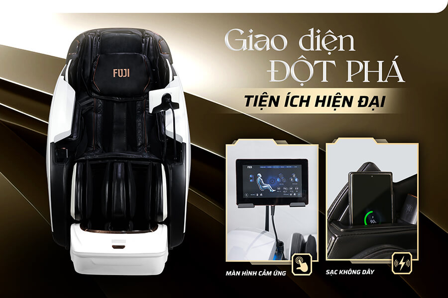 Không chỉ thế, ghế massage chính hãng FJ889 Lux còn tích hợp sạc không dây cho điện thoại. Người dùng chỉ việc đặt điện thoại vào hộp sạc bên hông ghế là có thể tự do tận hưởng thư giãn trong lúc điện thoại được sạc đầy.