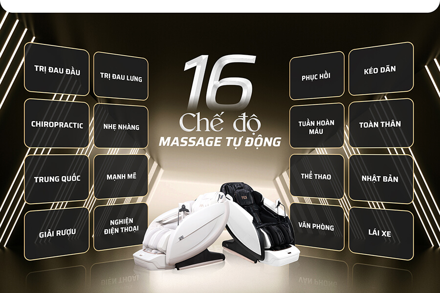 Ghế mát xa cao cấp FJ889 Lux là một siêu phẩm tích hợp chế độ massage tự động đa dạng và đầy khác biệt. Nổi bật trong đó là các chế độ massage được phân chia theo nhiều mục đích sử dụng như sau: