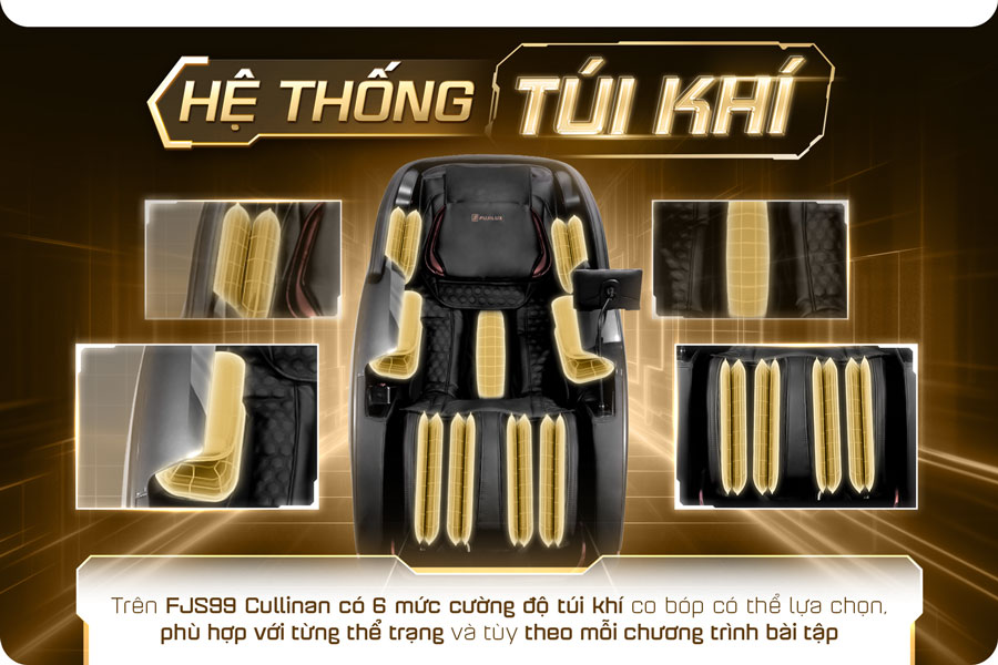 Ghế massage FJS99 Tuyệt tác kết hợp giữa nghệ thuật và công nghệ, hội tụ đầy đủ tinh hoa đắt giá nhất. Niềm tự hào của Fuji Luxury với 4 năm ròng nghiên cứu và quá trình R&D tiêu tốn đến hơn 1 triệu USD để cho ra thành quả là siêu phẩm thượng lưu hàng đầu.