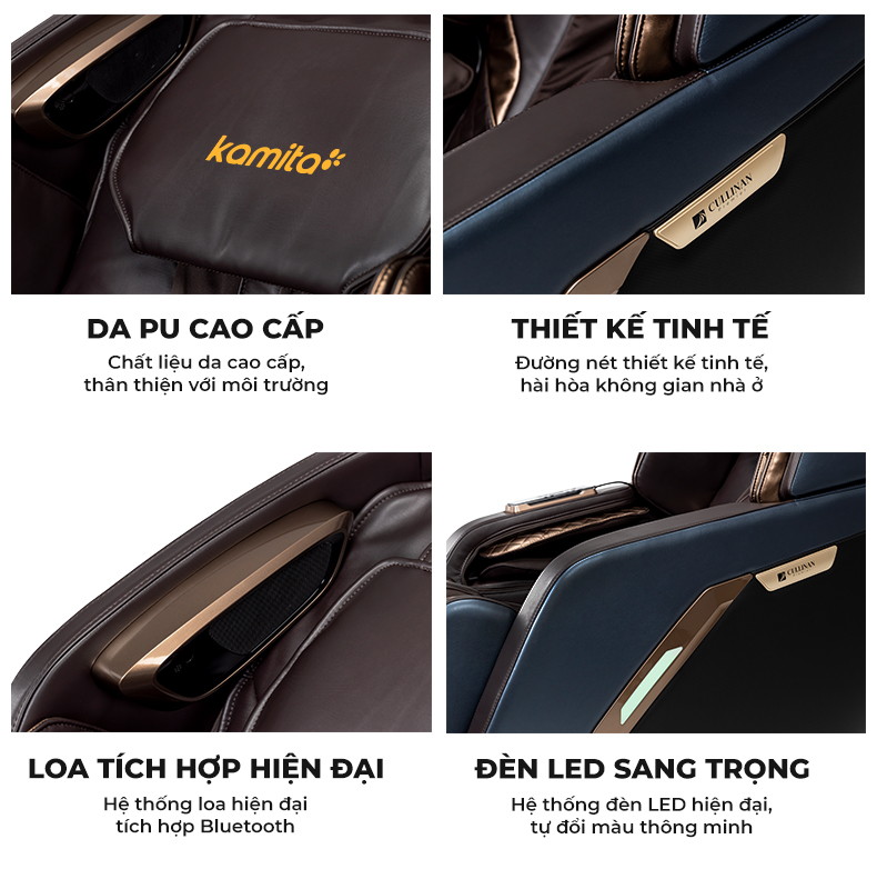 Ghế massage CULLINAN PREMIER sử dụng chất liệu da cao cấp theo quy chuẩn RoHS, đặc biệt an toàn khi sử dụng, hoàn toàn không gây kích ứng da. Da ghế cho cảm giác như da thật, vời màu sắc nổi bật, bắt mắt, bền màu với thời gian, không trầy xước, không bong tróc.