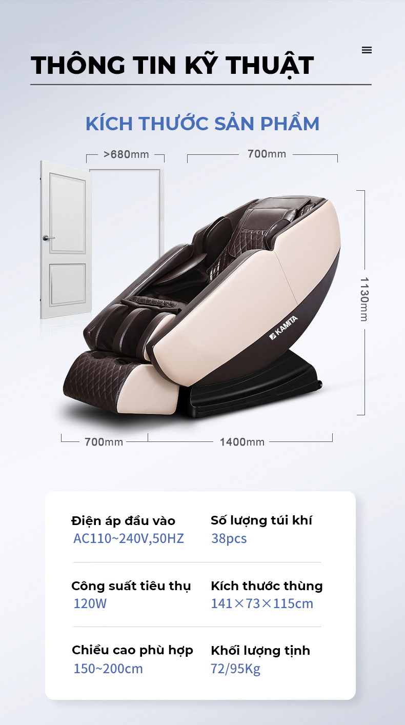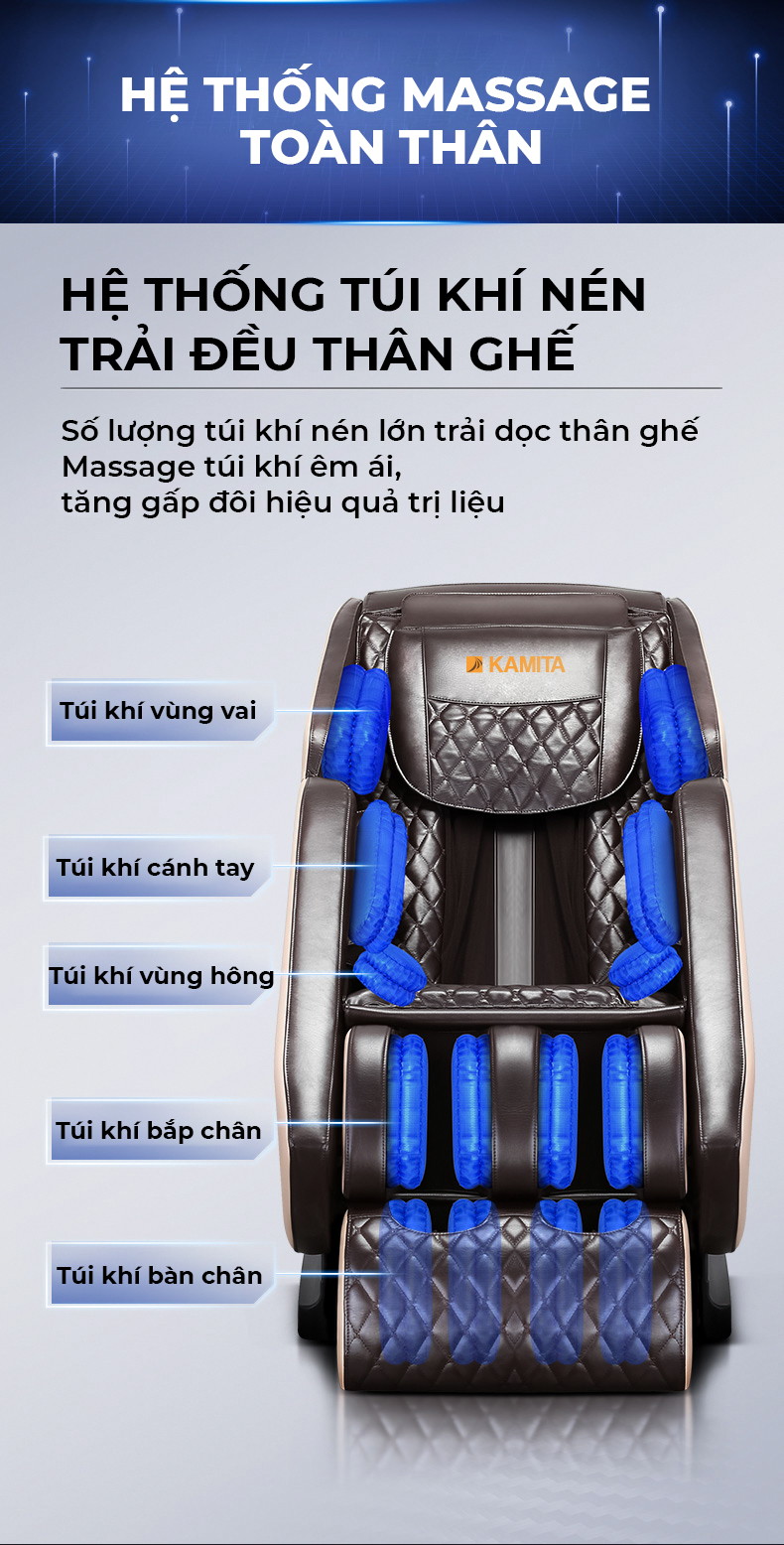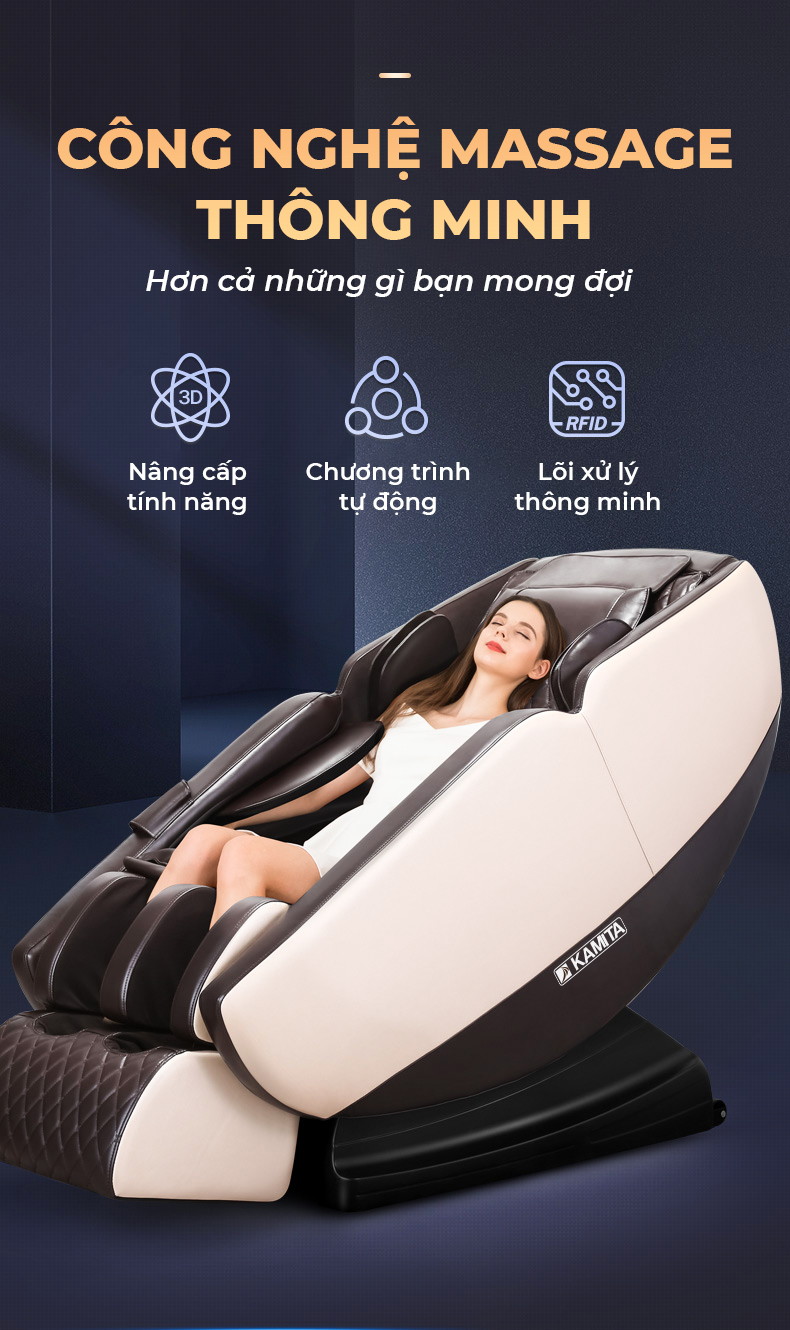 Ghế massage Kamita KC-568 sở hữu công nghệ tiên tiến vượt trội là một trong những sản phẩm bán chạy nhất trên thị trường ghế massage tại Việt Nam hiện nay.