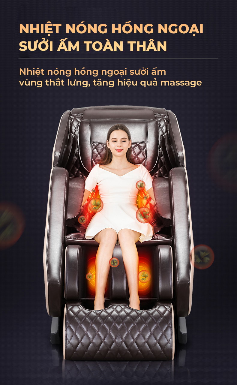 - Nhiệt nóng hồng ngoại sưởi ấm vùng thắt lưng và chân