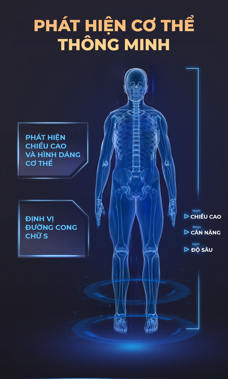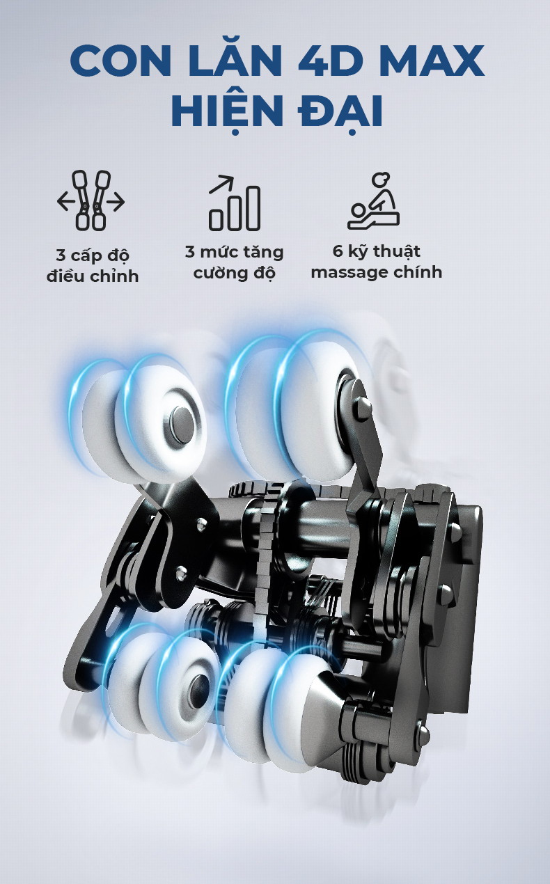 - Hệ thống con lăn 4D Max cảm biến kép xác định thể trạng người dùng và dò tìm huyệt đạo