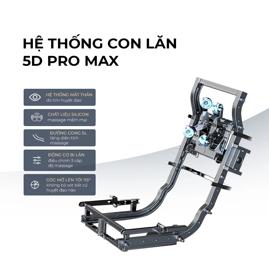 Con lăn 4D bọc silicon cao cấp mô phỏng chân thực các kỹ thuật massage Shiatsu. Đồng thời di chuyển trên khung SL dài hơn 130cm ôm sát cơ thể nhẹ nhàng day, ấn các huyệt đạo, tác động sâu tới các nhóm cơ, giúp tăng diện tích massage và xoa bóp được những vùng cơ thể mà con lăn massage bình thường khó chạm đến. Đem đến những trải nghiệm massage thư giãn chuyên nghiệp như được thực hiện bởi bàn tay chuyên gia, xua tan mệt mỏi, giảm đau nhức tức thì cho người sử dụng.