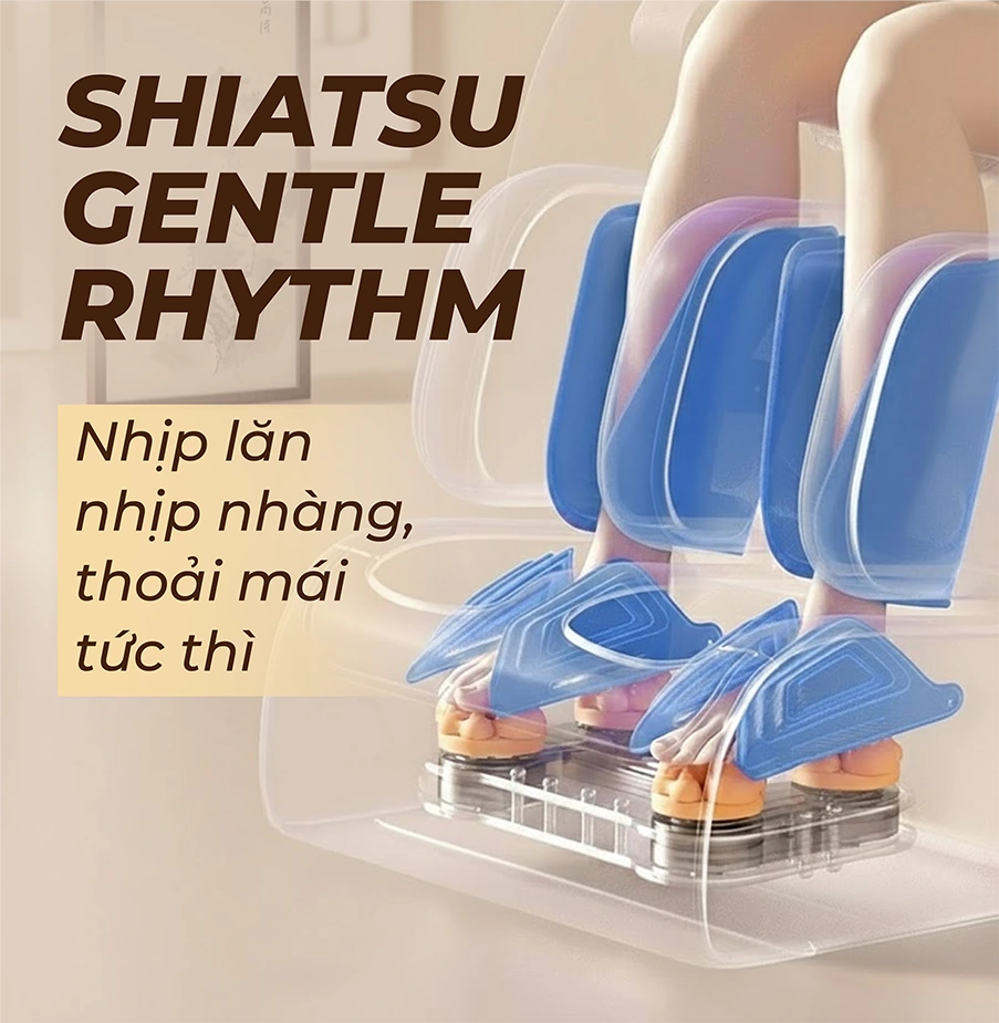 Nhịp lăn êm dịu mô phỏng Shiatsu Nhật Bản, tác động chuẩn vào gan bàn chân – vòm chân – gót chân, giúp giảm căng mỏi và mang lại cảm giác thoải mái tức thì.