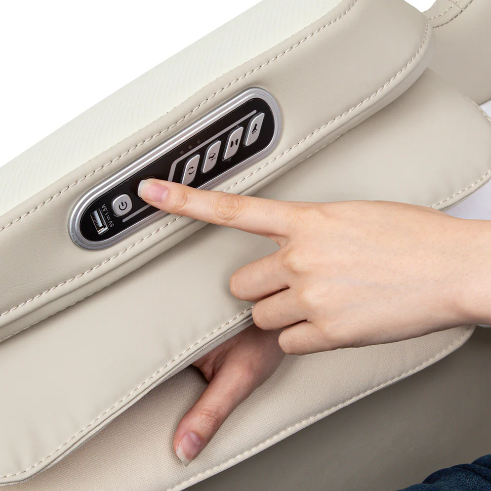 Bên cạnh điều khiển chính, ghế còn tích hợp bảng điều khiển rút gọn ở phần tay vịn, cho phép thay đổi chế độ, tăng giảm cường độ, điều chỉnh tư thế chỉ bằng vài thao tác đơn giản mà không cần dừng liệu trình đang chạy.
