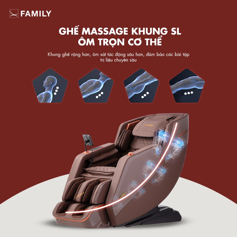 Ghế massage toàn thân Family FC-888 là lựa chọn hàng đầu cho những ai đang tìm kiếm giải pháp thư giãn, phục hồi sức khỏe và chăm sóc cơ thể mỗi ngày. Sản phẩm được phân phối chính hãng bởi thương hiệu Ghế massage Family, cam kết chất lượng và dịch vụ hậu mãi tận tâm.
