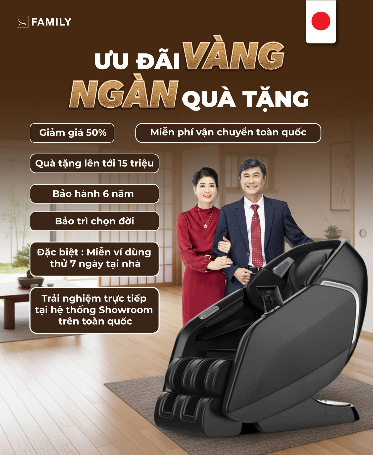 Ghế massage toàn thân FAMILY FC-889 đánh dấu cột mốc mới của công nghệ chăm sóc sức khỏe tại gia, nơi công nghệ trị liệu toàn thân chuẩn Nhật Bản được tái hiện một cách tinh xảo và mạnh mẽ. FC-889 - Lựa chọn xứng đáng để nâng tầm sức khỏe cho cả gia đình.