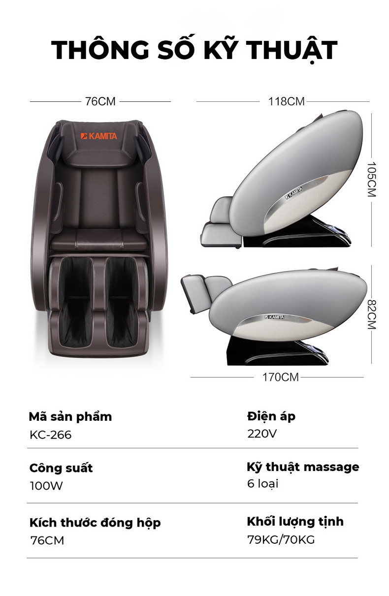 Các thông số kỹ thuật của ghế massage Kamita KC-266