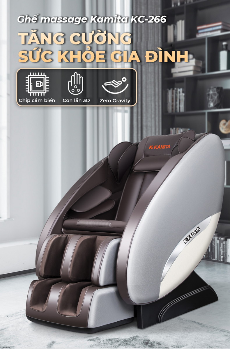 Ghế massage Kamita KC-266 là sản phẩm chăm sóc sức khỏe thông minh được ứng dụng các công nghệ độc hàng đầu trên thế giới. Ghế massage KC-266 thế hệ mới của Kamita được tích hợp tới 20 tính năng hoàn hảo, giúp Quý khách hàng có được trải nghiệm massage chân thật và hiệu quả nhất.