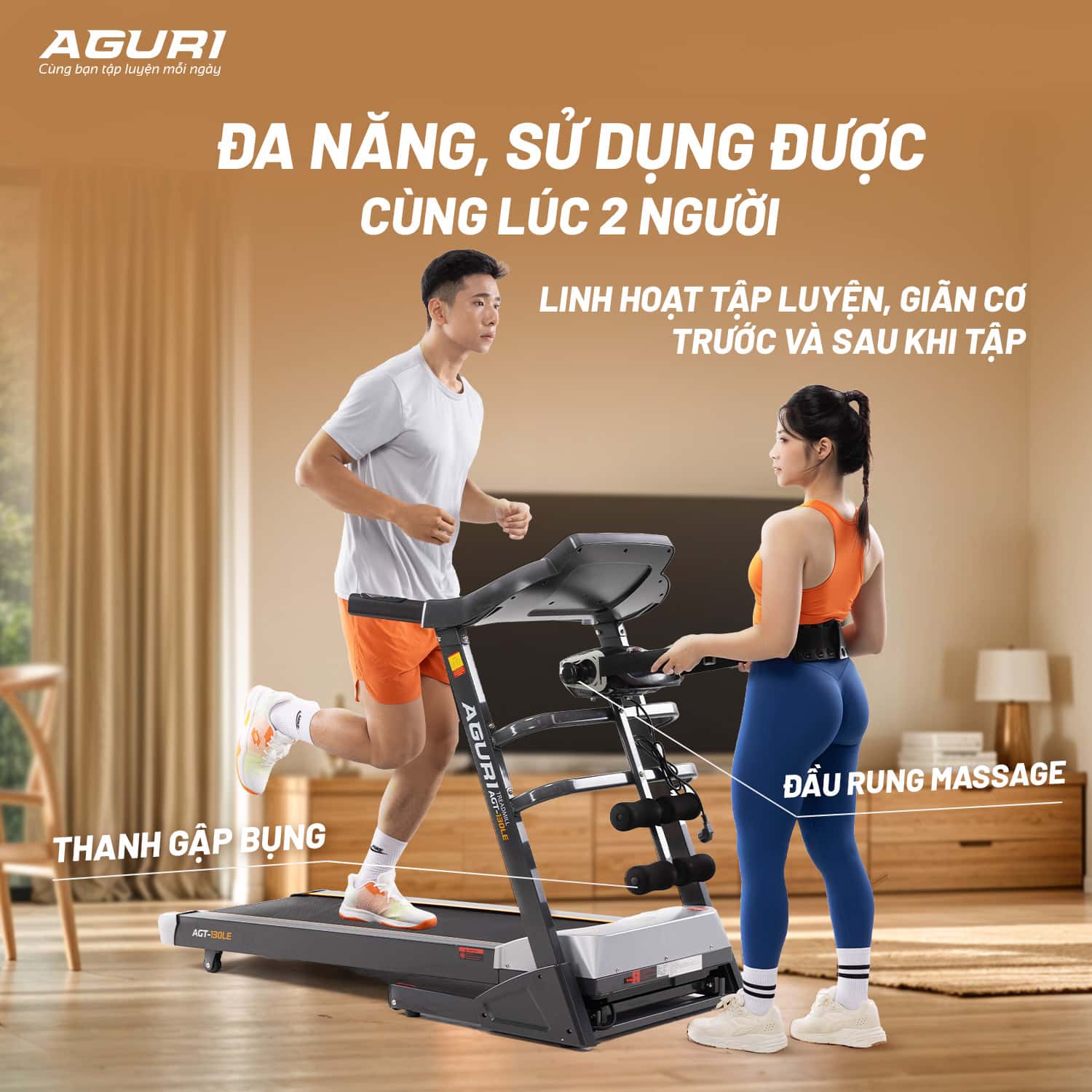 1. Máy chạy bộ AGT-130LE trang bị màn hình LED hiện đại, giao diện dễ sử dụng