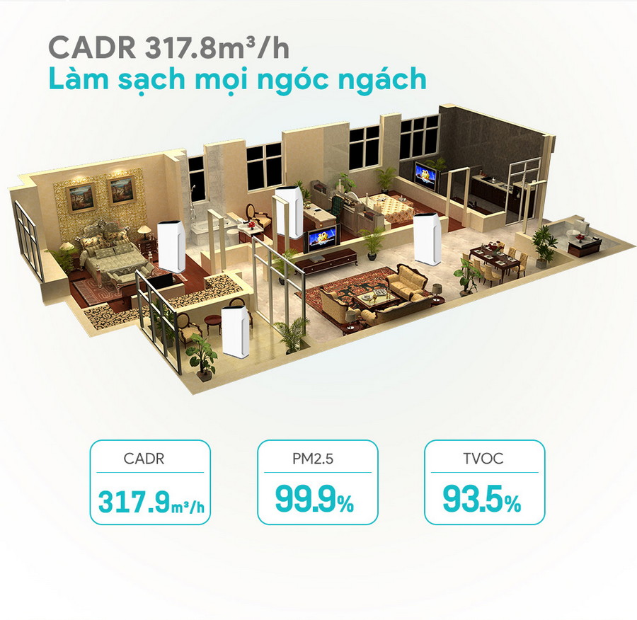 - • Hiệu quả lọc PM 2.5: 99.9%