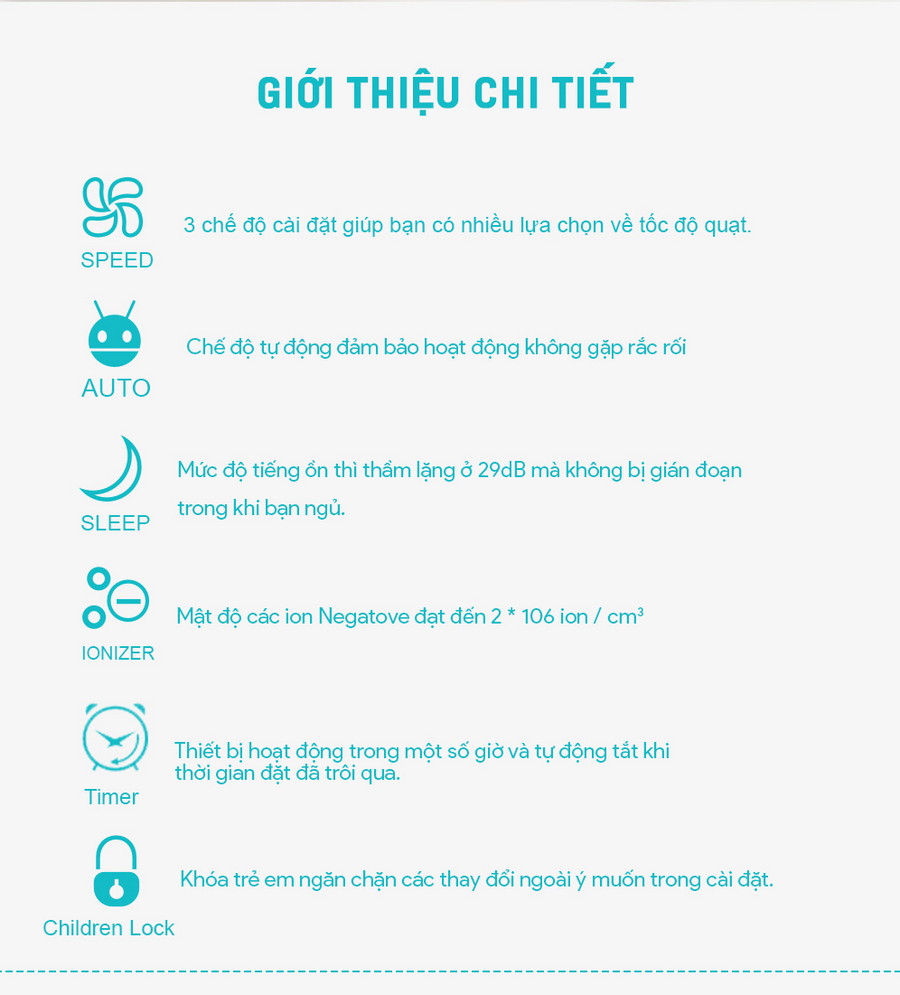 - • Giải phóng ion âm: Tăng hiệu quả lọc khí lên tới 99.99%, bắt giữ các chất ô nhiễm siêu nhỏ.