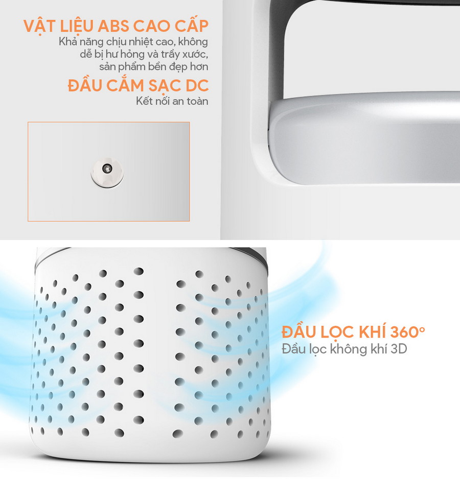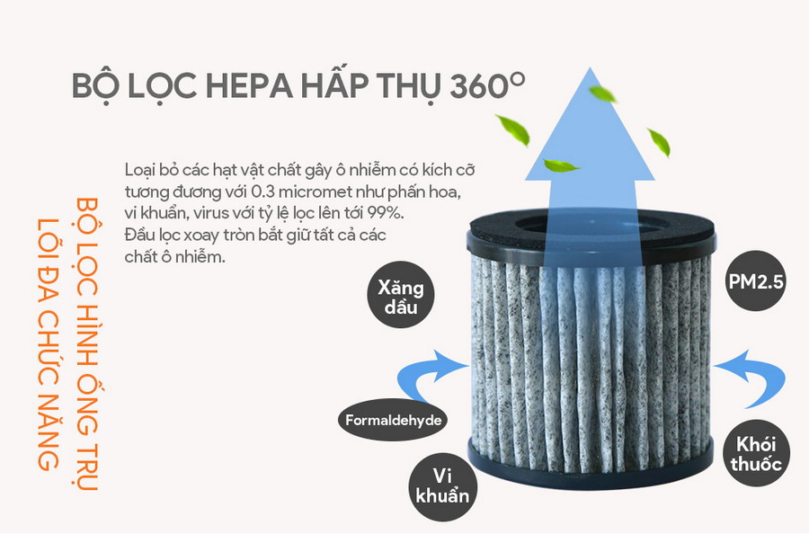 - • Đầu lọc xoay 360 độ giúp làm sạch không khí