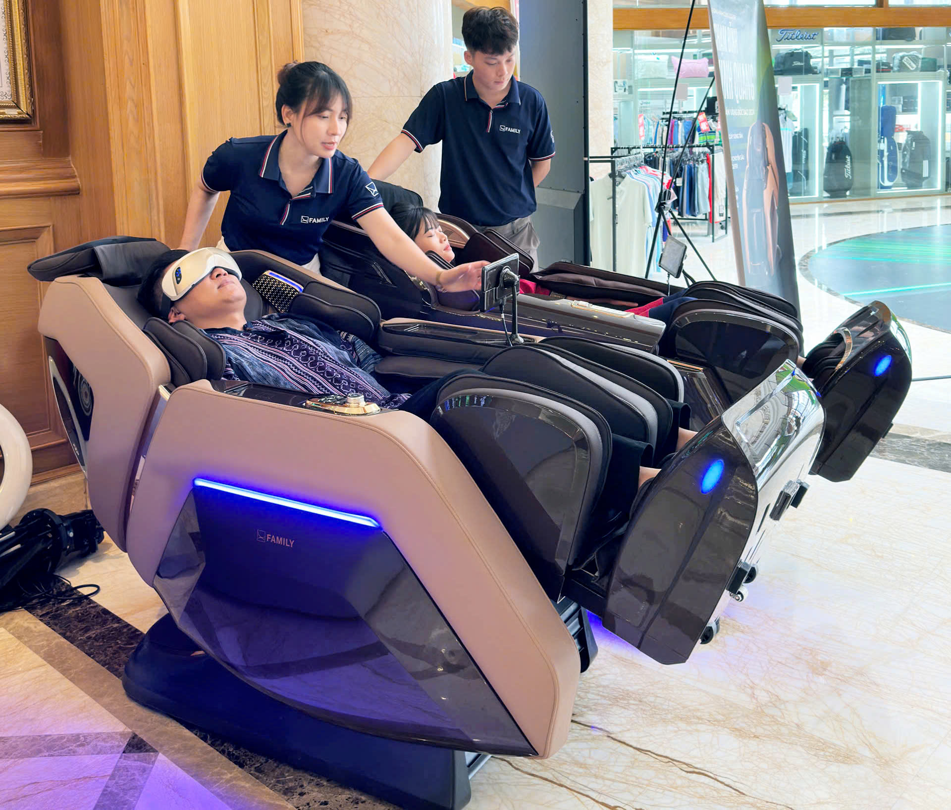 Ngay tại khu trưng bày của Family & Tokyo Care tại giải đấu Arena of Unity – sân golf Long Biên, khách tham quan sẽ có cơ hội trải nghiệm miễn phí những siêu phẩm ghế massage cao cấp như FC-699 và JC-999 – dòng sản phẩm tích hợp loạt công nghệ chăm sóc sức khỏe hiện đại bậc nhất hiện nay. Với AI cảm biến thông minh, ghế có thể quét toàn bộ cơ thể, xác định chính xác huyệt đạo cùng với công nghệ Shiatsu mô phỏng động tác chuyên gia Nhật Bản giúp tác động sâu vào vùng cổ, vai, gáy, lưng và chân, hỗ trợ giảm đau nhức, tê mỏi và lưu thông khí huyết hiệu quả. Đây là cơ hội hiếm có để người dùng cảm nhận rõ rệt sự khác biệt của massage công nghệ cao – không chỉ thư giãn mà còn chăm sóc sức khỏe toàn diện ngay tại nhà.