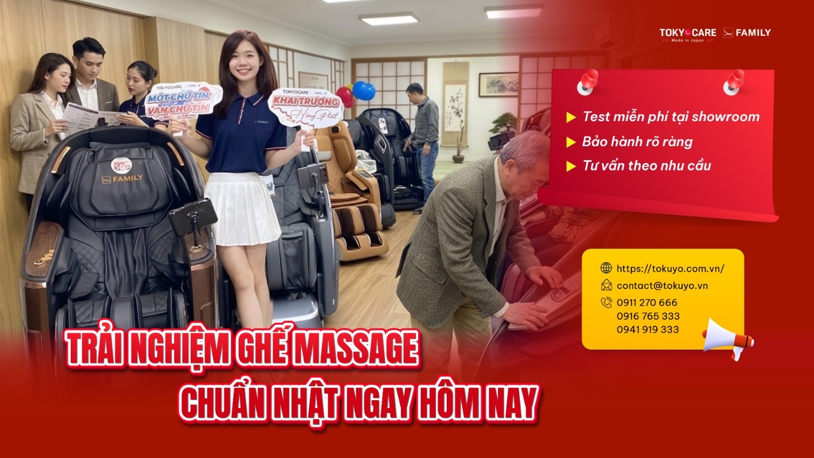 Tại Tokyo Care, bạn có thể dễ dàng trải nghiệm trực tiếp nhiều dòng ghế massage Nhật nội địa và nhập khẩu chính hãng, được tư vấn kỹ lưỡng theo nhu cầu sức khỏe và ngân sách. Bên cạnh đó, chính sách bảo hành minh bạch và hệ thống showroom toàn quốc cũng giúp bạn yên tâm hơn trong quá trình sử dụng lâu dài.