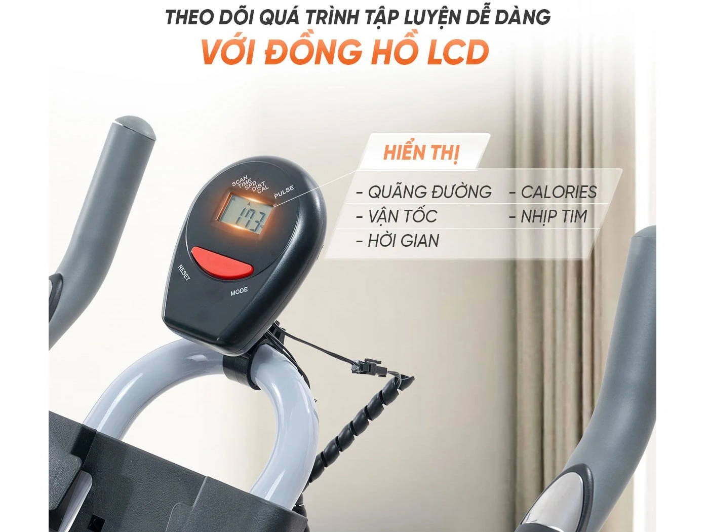 Nhờ đó, người dùng dễ dàng theo dõi tiến trình tập luyện và điều chỉnh cường độ phù hợp khi sử dụng xe đạp tập tại nhà.